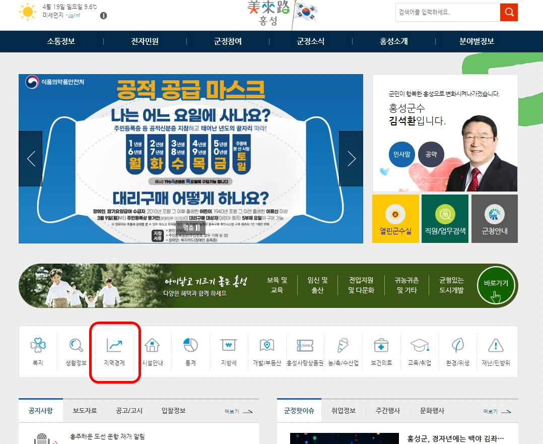 홍성군청 홈페이지에서 아래 순서대로 들어가시면 홍성사랑상품권 가맹점조회를 할 수 있어요.
