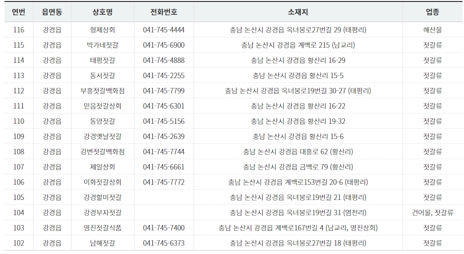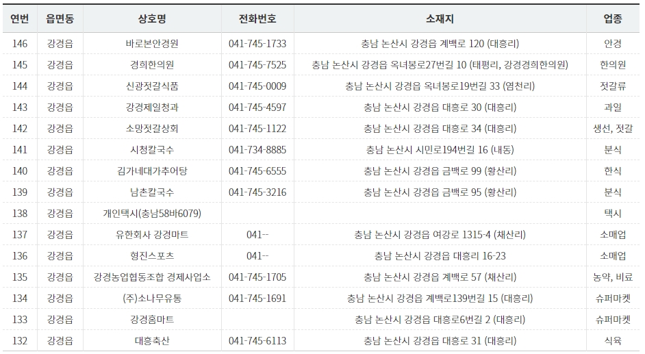 논산시 강경읍 가맹점만 올려 봅니다. 강경읍만 206곳이에요.