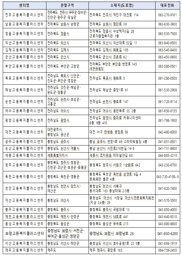 부안고용복지플러스센터063-580-0501 목포고용센터061-280-0500