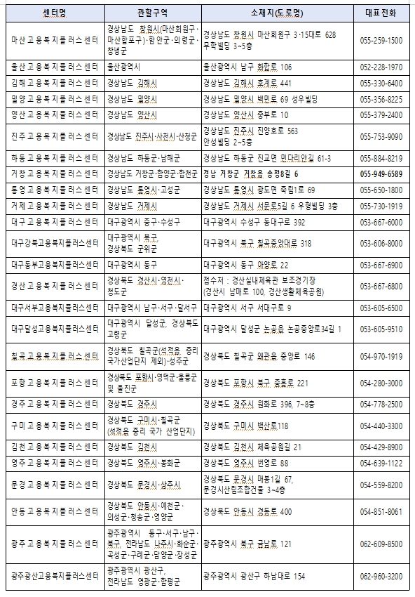 울산고용센터052-228-1970 김해고용센터055-330-6400