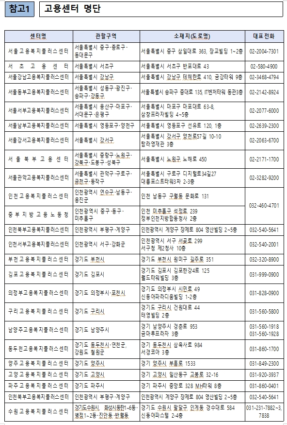 서울강남고용지원센터02-3468-4794, 서울동부고용지원센터02-2142-8924,