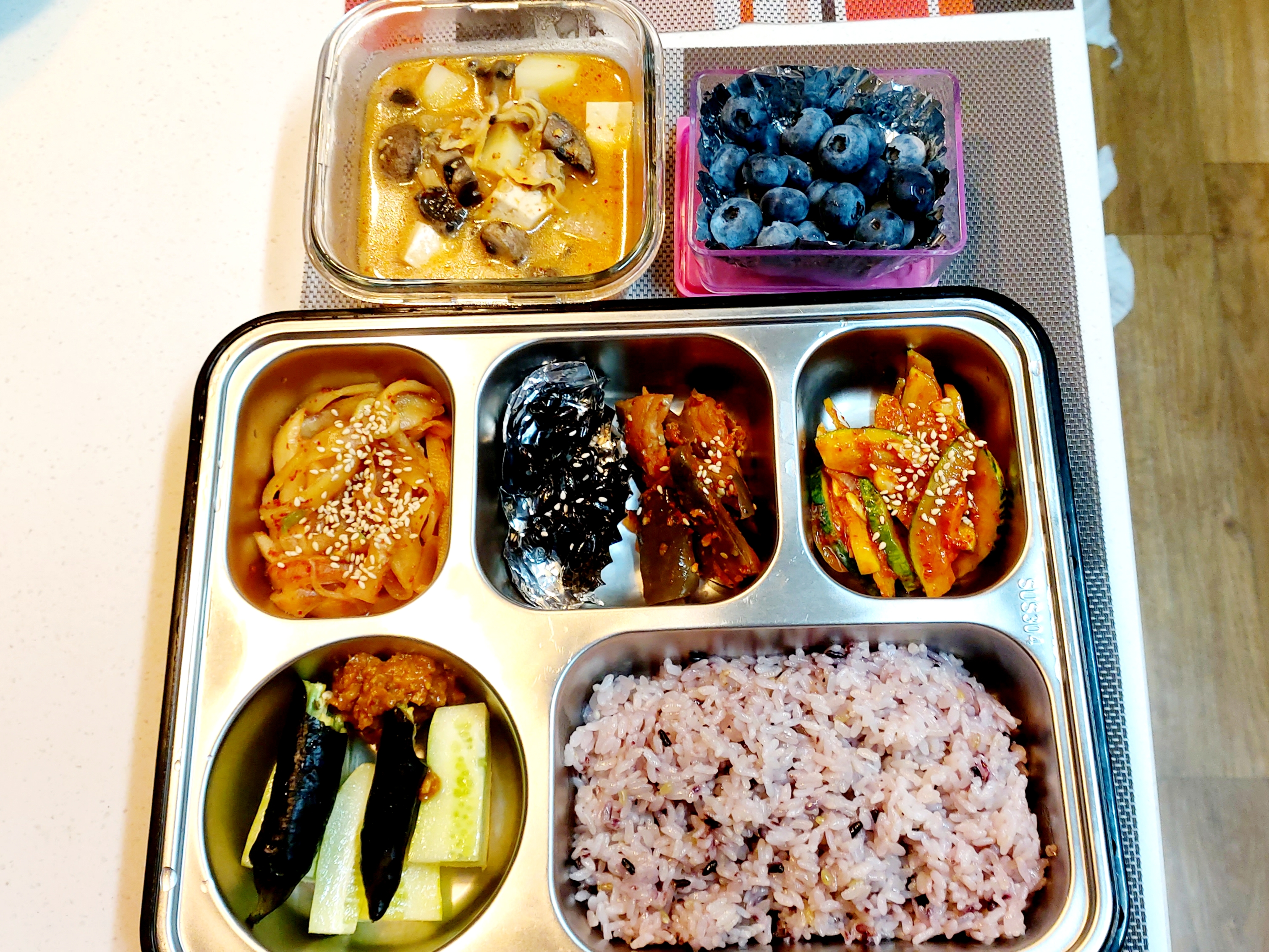 도시락 싸는 분들에게 도시락 반찬은 항상 걱정이지요. 신랑 도시락을 매일 싸고 있어요.저희집은 텃밭이 있어요. 그래서 요즘은 여름이라 호박, 감자, 양파, 오이, 가지 등 제철야채들이 많아서 비용도 얼마 안 들고 도시락 싸기가 수월해요.