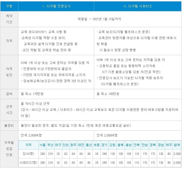 국가(한국정보화진흥원)에서 진행하는 디지털강사는 월70시간 이상 근무에 175만원의 급여가 지급될 예정이라고 합니다. 서포터즈는 100만원정도의 급여이고요.