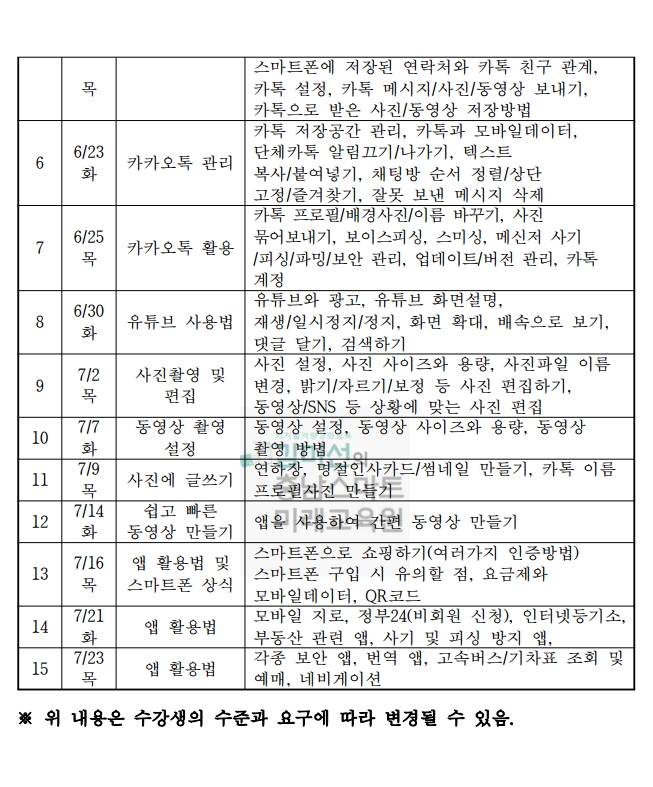 스마트폰교육 강의계획서, 커리큘럼은 강사님들께서 수업을 계획하실 때 꼭 필요합니다.