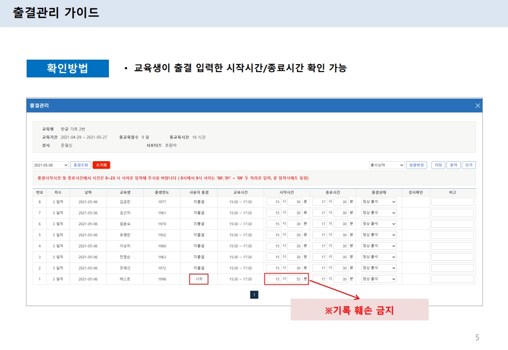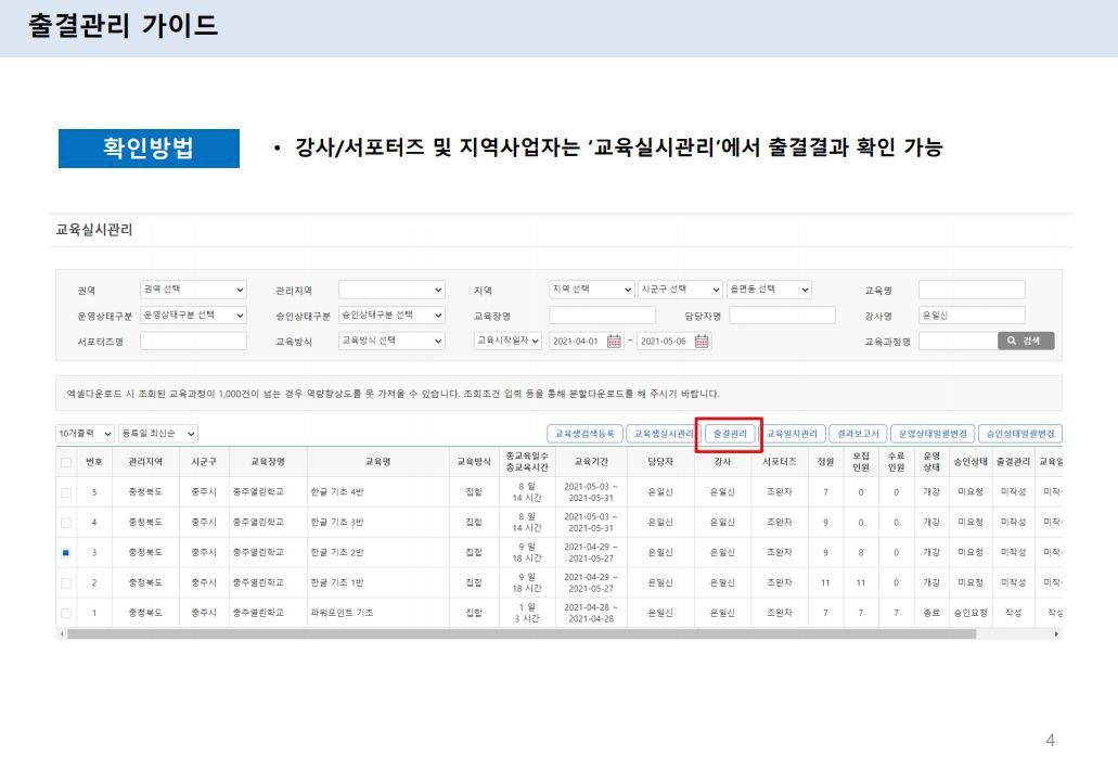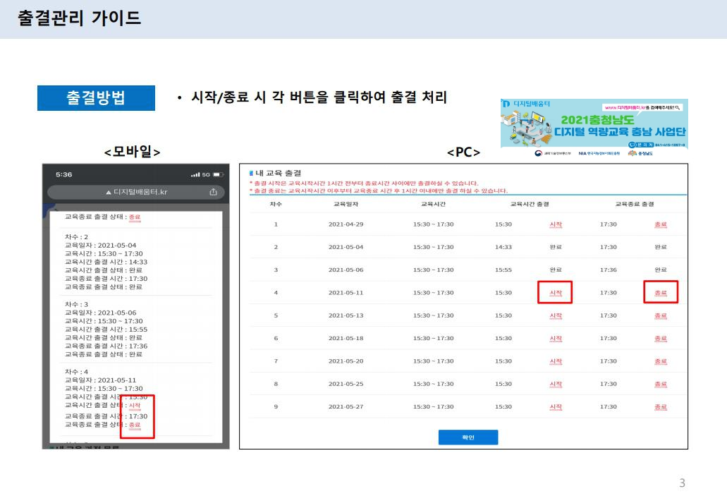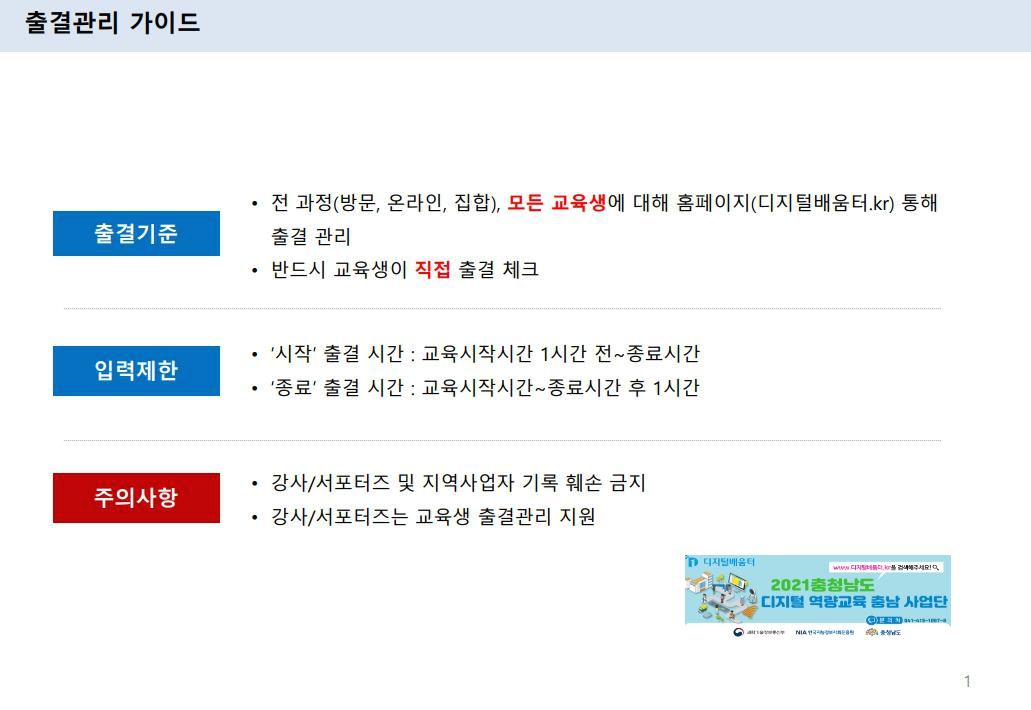 충남디지털배움터 출결관리 교육생 입퇴실방법