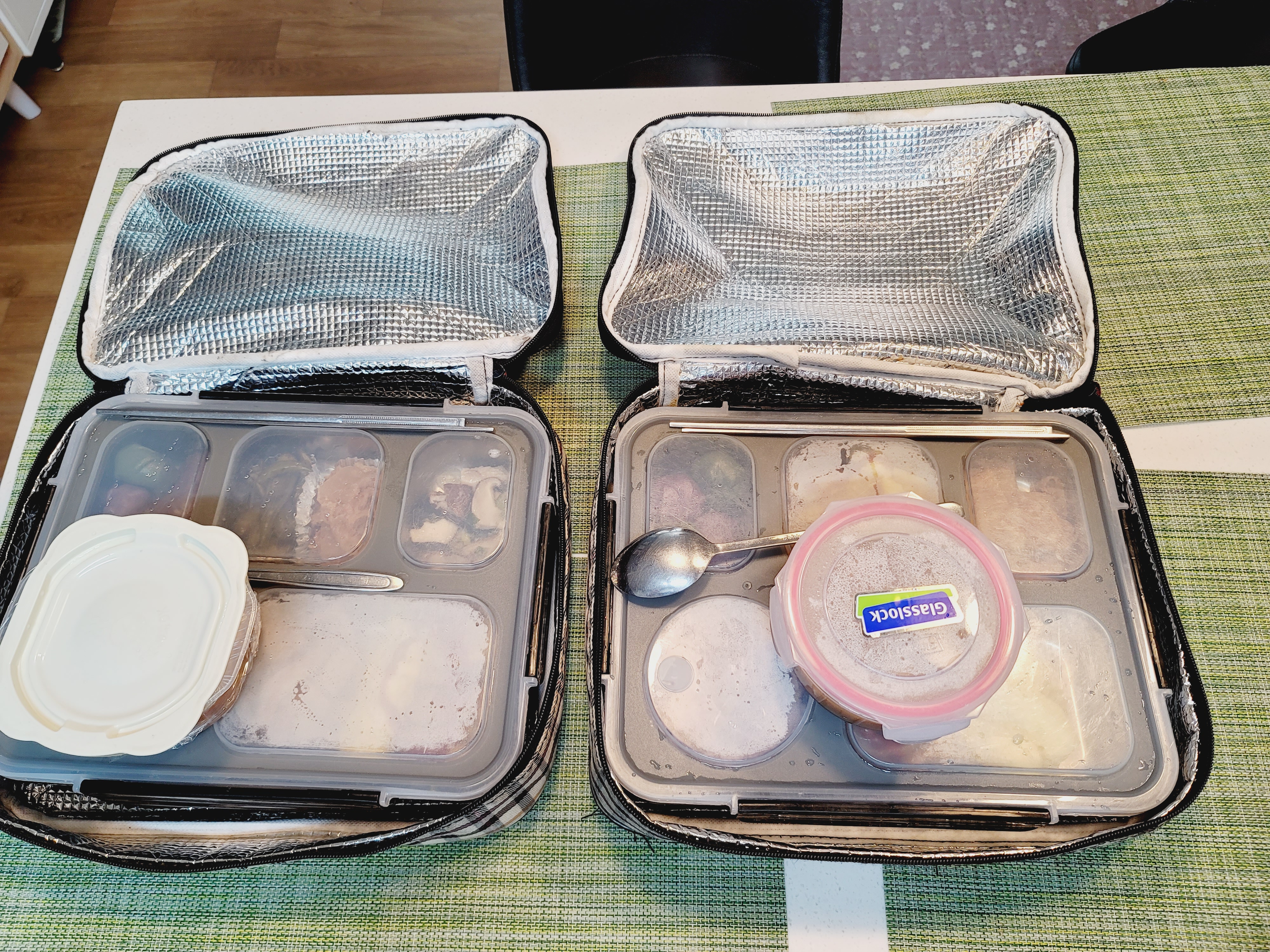 밥이랑 국은 원래 별도의 통에 넣어서 회사에서 전자렌지에 데워 드시는데 여름이라 밥을 한 도시락에 넣었어요.