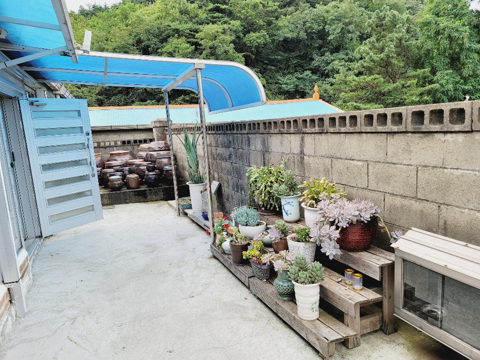 보령의 작은 점집 일월선녀님 댁 작은 마당은 항상 깨끗합니다. 투박한 받침에 항상 깔끔하게 화초를 기르십니다.
