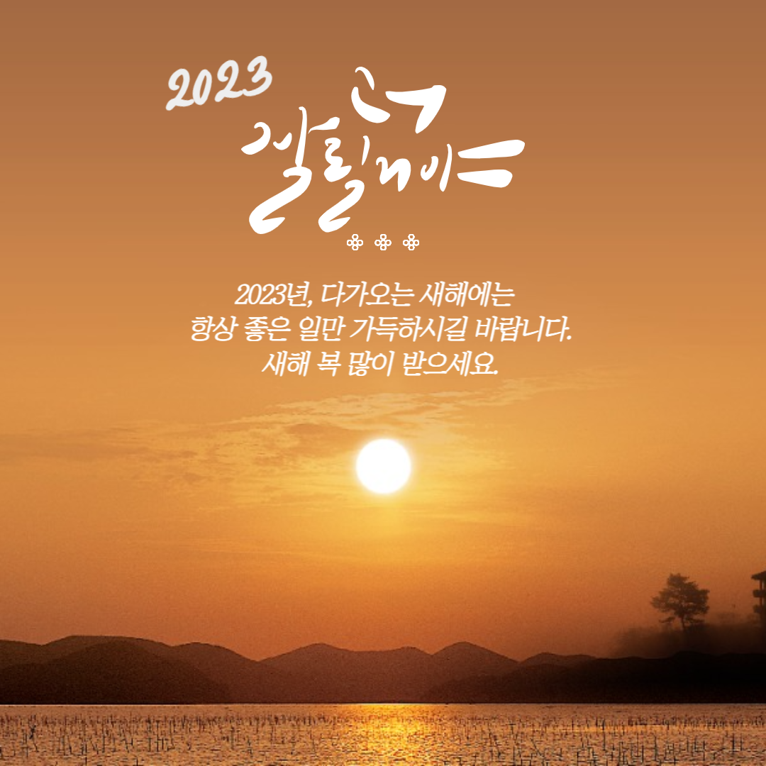 2023년 희망찬 계묘년의 해가 밝았습니다. 지난 한 해 힘들었던 기억은 잊으시고 새해에는 소망하는 모든 일이 순조롭게 이루어지시길 바랍니다.