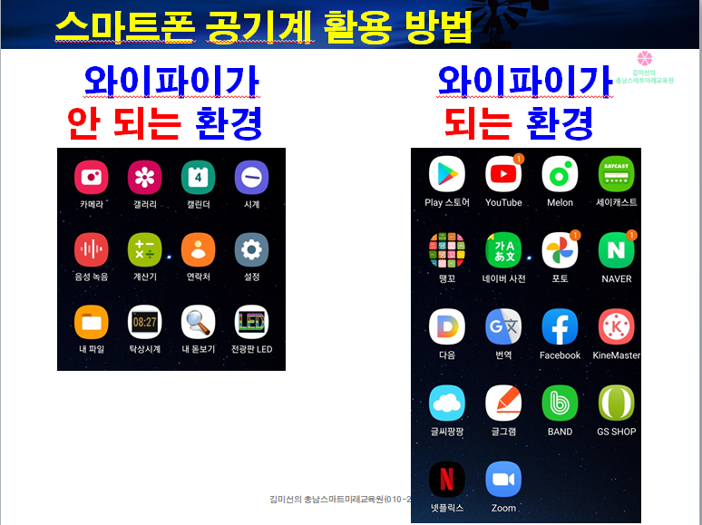 얼굴을 보이고 해야 하는 비대면 상황이거나 스마트폰교육을 받는 상황이라면 공기계로 줌에 접속하는 것이 좋습니다.
