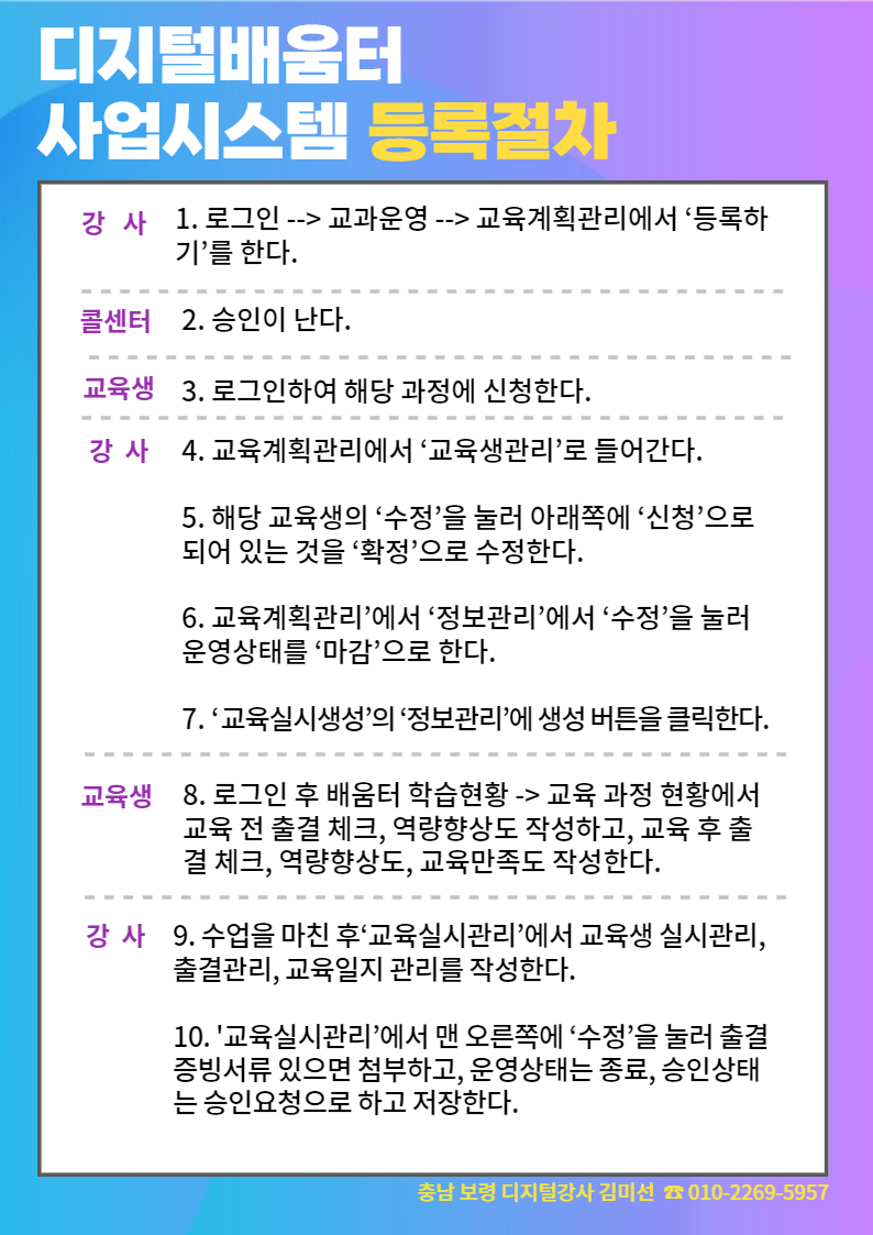 디지털강사님들과 디지털서포터즈님들에게 도움이 되도록 디지털콜센터 홈페이지에서 수업 등록하는 절차를 정리해 보았습니다.
